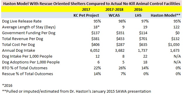 Haston Model With Rescue Oriented Shelter Verses No Kill Animal Control Shelters