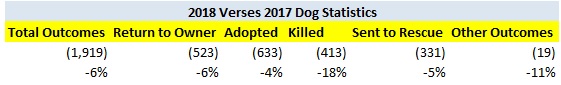 2018 Verses 2017 NJ Dog Statistics Change