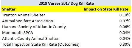 2018 Verses 2017 NJ Shelter Dogs Increase