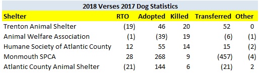 2018 Verses 2017 NJ Shelter Dogs Increase 2