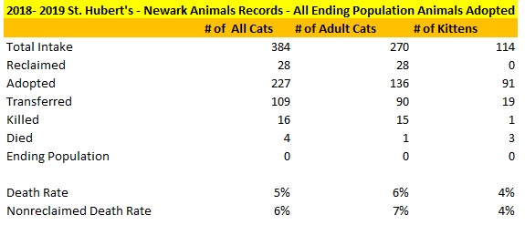 2018-2019 St. Hubert’s Cats Ending Population Adopted Revised