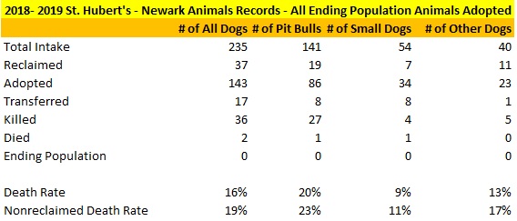 2018-2019 St. Hubert’s Dogs All Ending Population Adopted