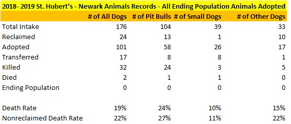 St Hubert’s Newark Contract Dog Statistics Ending Population Assumed Adopted