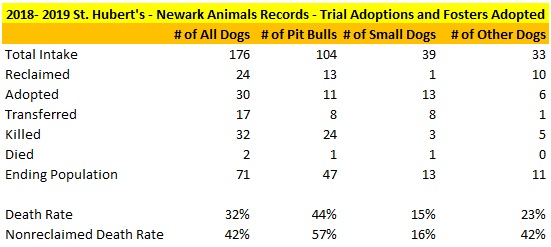 St Hubert’s Newark Contract Dog Statistics Foster and Trial Adoptions Assumed Adopted