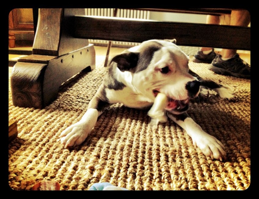 Soon after adopting out Major, we fostered Chance. Chance was an energetic pit bull-Labrador mix that spent a long time at AHS-Newark. Daphne clearly did not like Chance’s Labrador type energy. Estrella and I had to keep a constant eye on Daphne to ensure she behaved. Miraculously, she did. While we were on vacation, the rescue we fostered for adopted Chance out.