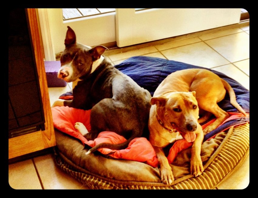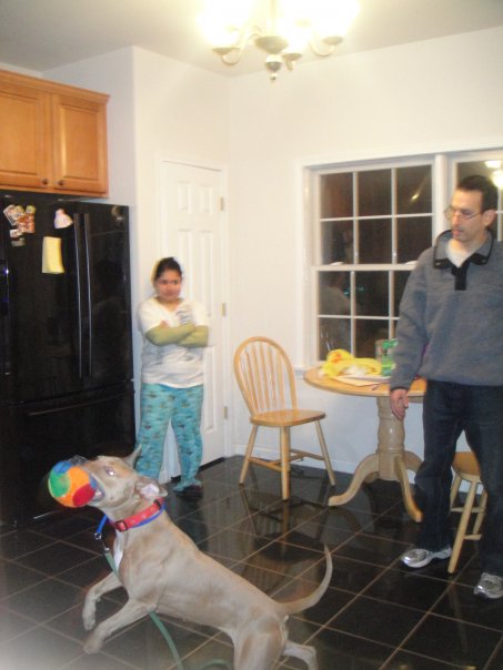 Over the next several months, we fostered a couple of other dogs that rescues pulled from AHS-Newark. Gouda was a lovable and goofy dog Daphne did not know what to make of. AJ was a smaller pit bull Daphne felt comfortable with, but was not rough enough to have the fun she enjoyed. Still they had many sweet moments together.