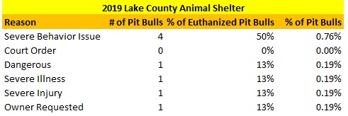 2019 LCAS Traditional Pit Bull Euthanized Reasons