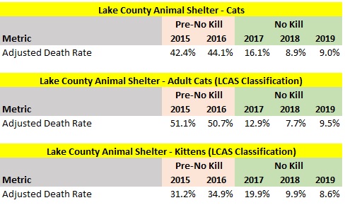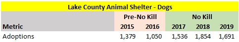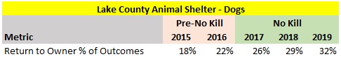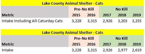 The statistics include an estimate to remove animals St. Hubert’s transfers in and quickly transfers out through its Sister Shelter WayStation program. Since St. Hubert’s is effectively acting as a middle man and not holding these animals very long, it makes sense to exclude these dogs and cats from the various kill rate statistics. If I did not exclude these animals, I would understate the dog and cat kill rates due to inflated intakes and outcomes numbers. Therefore, I removed all of St. Hubert’s dogs transferred out from the intake and outcomes figures in the metrics. Since St. Hubert’s primarily uses the Sister Shelter Waystation program to quickly transfer in cats and send them to out of state facilities, I only backed out the cats St. Hubert’s transferred to out of state organizations in the various kill rates. This adjustment increased the dog kill rate (intake) from 5.1 to 5.7% and the cat kill rate (intake) from 15.2% to 15.4%.