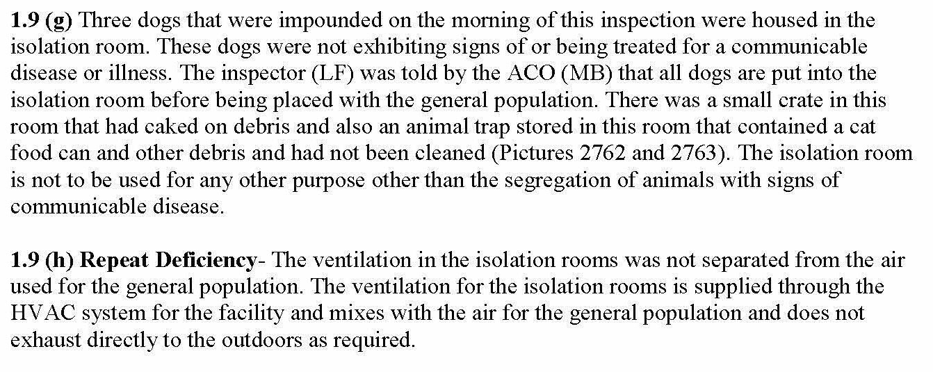 To make matters worse, Elizabeth Animal Shelter provided no 2015 inspection report. In 2014, the Elizabeth Animal Shelter inspected Linden Animal Control’s dreadful facility after the City of Linden failed to inspect its shelter for seven years. Despite knowing about this law, the City of Elizabeth apparently did not have its own shelter inspected in 2015. Thus, Elizabeth Animal Shelter should not have had a license to operate in 2015.