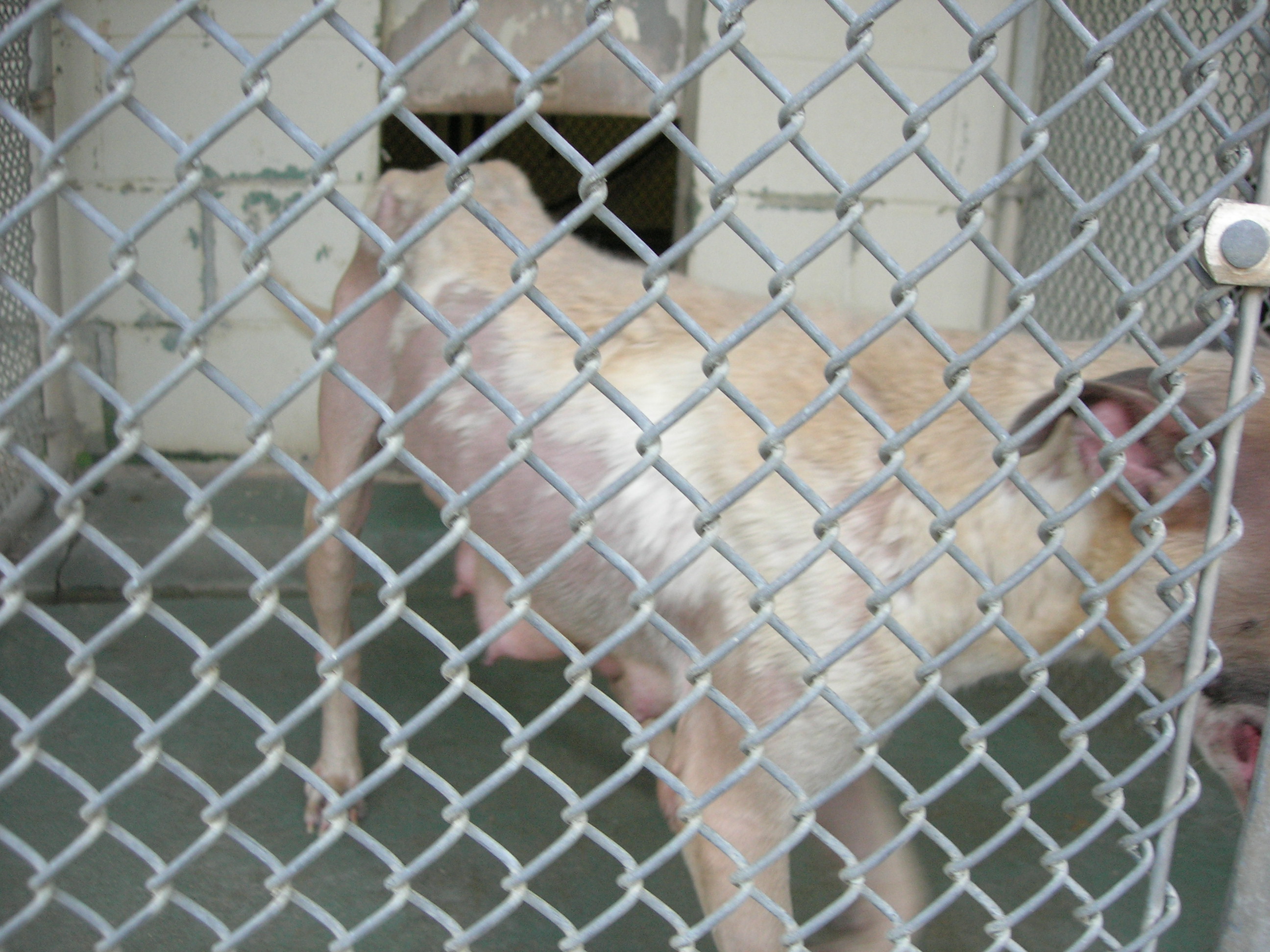 This dog also had enlarged and distended teats and may have recently nursed puppies before being impounded. This dog was displaying signs of stress at the time of this inspection; she was pacing from side to side and was snapping at the dogs housed on either side of her enclosure. This dog was not provided with any means of stress relief, such as separation or barriers to prevent the direct view of other dogs, soft bedding, and a clean, dry environment, free from the strong odor of urine and the scent of other bodily secretions that had permeated the porous concrete in the dog enclosures.”